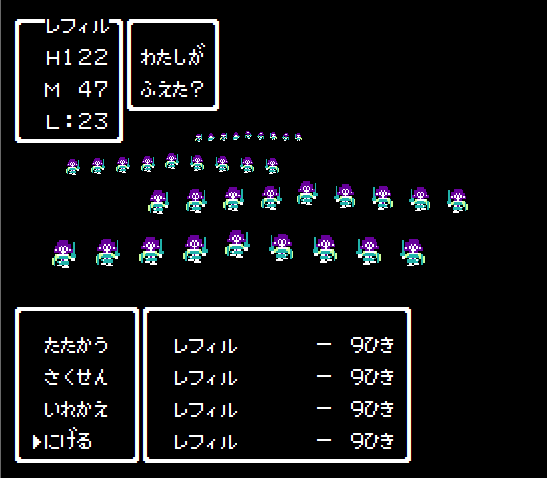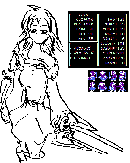モンスターのドット絵も描ければ、まさしくFC版の画面が再現できるかもなのですが・・・。