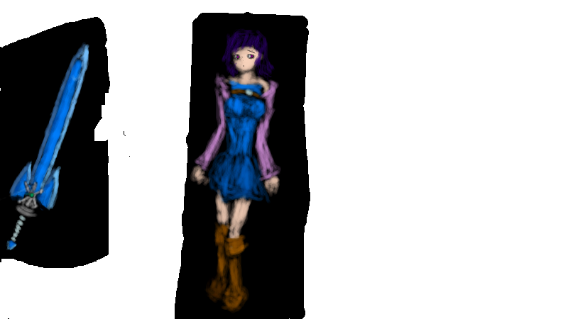 黒水彩の絵チャット版を再び挑戦。吹雪の剣は割合あっさり書けましたが、レフィルの方が少し手間取りました。