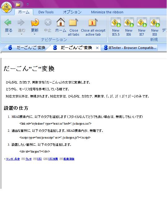 えっと、とりあえずIEtesterで動作確認した際のスクショを撮りました。