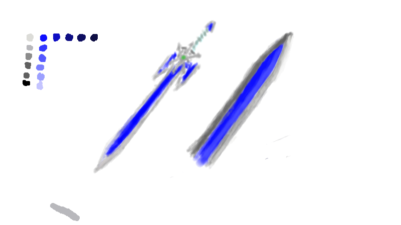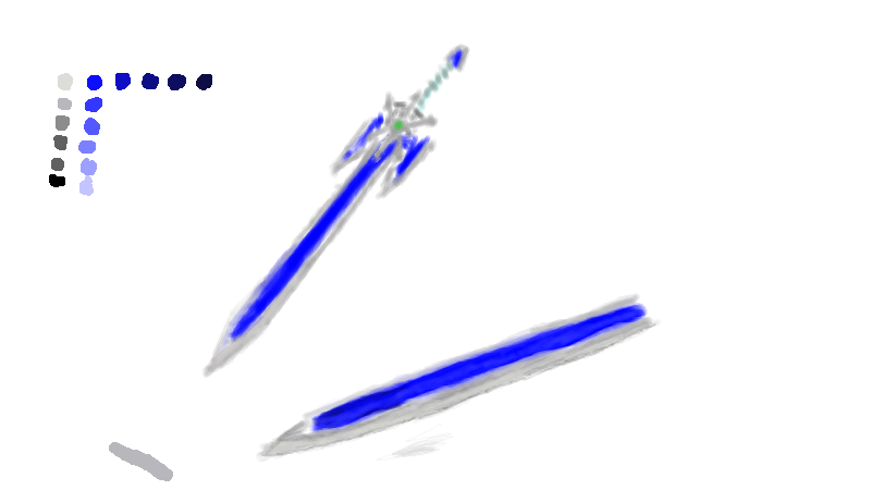 明暗の付け具合によって、刃に厚みが持たせられている気がしてきました。Pixiaさんだと単純な明暗もある程度簡単に調節できるので、それを使ってやったら…まぁ参考になる程度のものにはなったかもしれません。